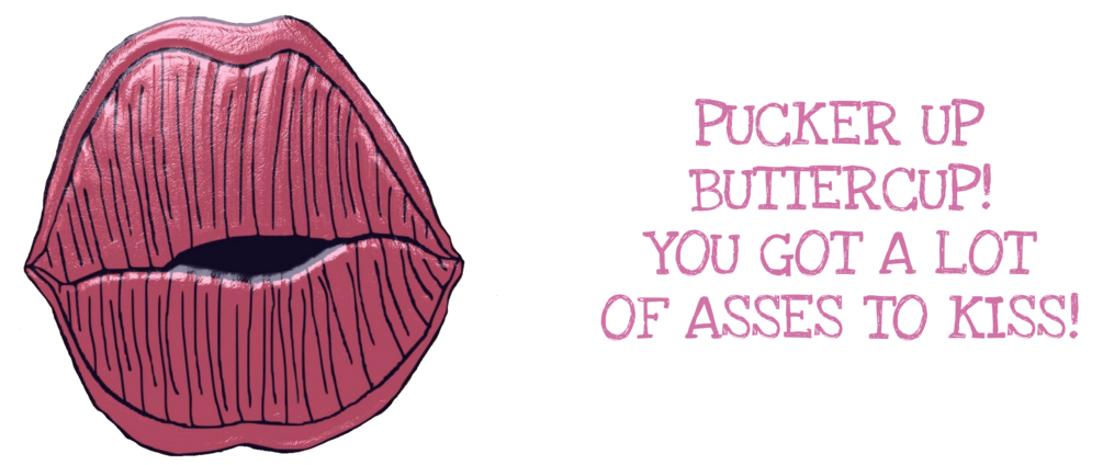 Mug It Up! Pucker Up Buttercup You Got a Lot of Asses to Kiss!